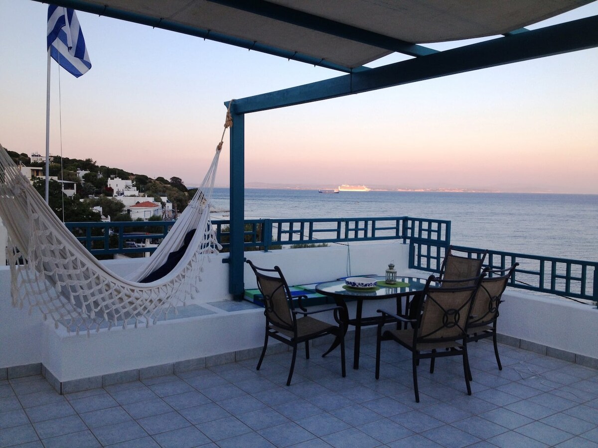 500 m Evdilosest, kust avaneb suurepärane vaade maalilisele sadamale. 5-minutilise jalutuskäigu kaugusel ilusast rahulikust rannast. Esimese korruse uus korter suure 40-meetrise verandaga. Sellel on hämmastav panoraamvaade. Kunstiliselt kaunistatud ilusa mööbliga.