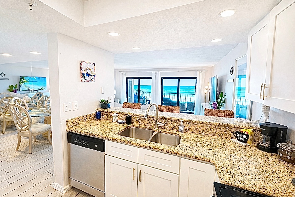 PLEASE NOTE: SEVERAL UNITS UNDER CONSTRUCTION in the building. Expected completion by May 31. Amazing beachfront condo, newly remodeled on the second floor. Vinyl plank flooring throughout, No CARPET. 2 Bedroom, 2 Bath. Completely unobstructed views of the beach. It is centrally located less than 1 mile from World Famous Johns Pass. Enjoy breathtaking sunsets from your living room with the water just feet away. The condo is walking distance to shopping, banking and many restaurants and bars.