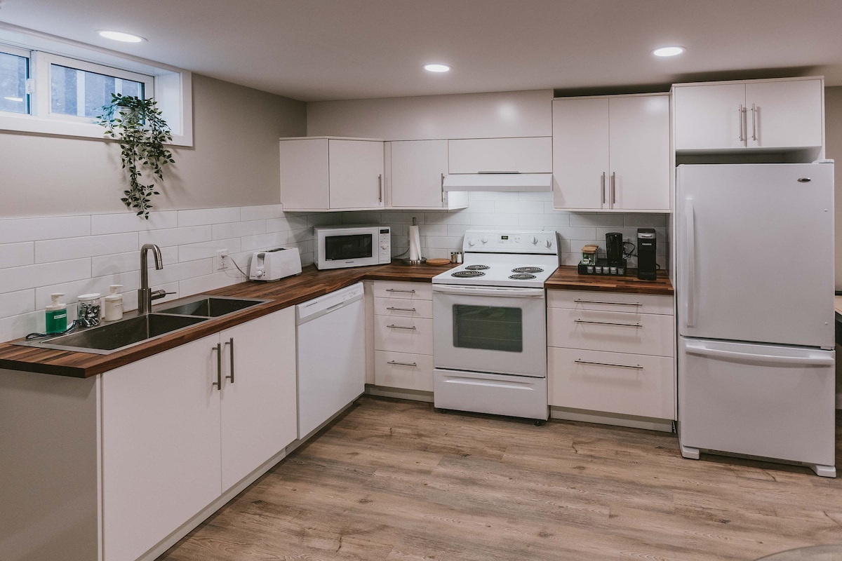 Tere tulemast oma kodunt lahkumata majutuskohta - avar, mugav ja täielikult varustatud sinu peatumiseks Edmontonis! Pikkade lahkumisjuhiste loend ✓ puudub - me koristame! ✓ 2 magamistoaga privaatne sviit ✓ Eraldi sissepääs ✓ Täisköök, vann, elu-/söögituba ✓ Tasuta pesumaja toas ✓ Õhkhokilaud ✓ 15 minutit kesklinnani ✓ 5 minutit Sherwood Parki ✓ Lihtne juurdepääs Yellowheadile ja Hendayle ✓ 10 minutit Rahvaste Ühenduse staadionini ✓ 1 kvartal jõeoruni ja Rundle Parkini ✓ Helikindel ✓ Kiire wifi ✓ Lisatekid ja rätikud