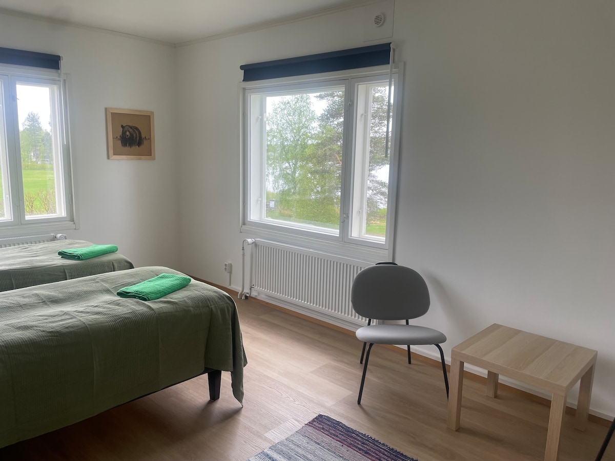 Avar kaheinimesetuba oma vannitoaga. Kaks 100 cm laiust voodit, mida saab soovi korral kõrvuti liigutada. Toas on kirjutuslaud, wifi, televiisor, garderoobid ja kuivatuskapp. Toas on laste reisivoodi, mis on saadaval eelneva taotluse korral. Majutuskohas on voodipesu, rätikud, käteseep, dušiseep, dušiseep ja šampoon ning lõppkoristus. Sul on juurdepääs 200 m2 ühiskasutatavale ruumile ning saad tasuta laenata jalgrattaid, lumekingi ja suuski