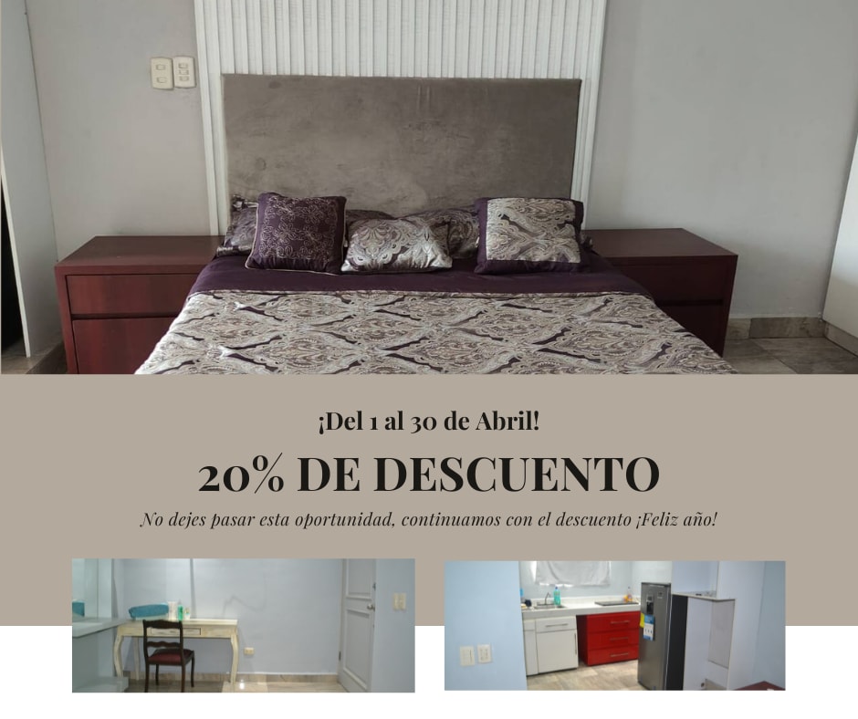 Naudi seda avarat ja turvalist esinduslikku majutuskohta. Sisaldab järgmisi teenuseid: internet, vesi, elekter, gaas Me esitame arve, mis sobib ideaalselt pikaajaliste peatumiste puhul. +4 päeva Asub García tööstuspiirkonnas, N.L., kust pääseb hõlpsasti Beltwayle. Varustatud köök, mikrolaineahi, blender, köögiriistad, baar, söögituba, elutuba, suur magamistuba suure voodiga, teine magamistuba laia voodiga. Terrass grillimise ja pesumasinaga Suitsuvaba ruum. Lähedal supermarketitele ja toidupoodidele
