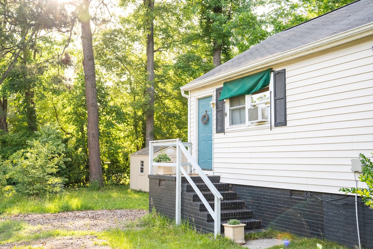 Welcome to our little house in Old North Durham. The 380 square foot studio guest house (open concept) sits behind our Bungalow in a centrally located historic neighborhood.; a 15-20 minute walk to Durham's vibrant Central Park District and a little further to downtown. Close by restaurants, music, movies and shows. Sleeps 2 comfortably on queen bed, and 2 additional on convertible couch from IKEA. Living area joins kitchen and is open to bedroom (see photos). Vaulted ceilings create openness.