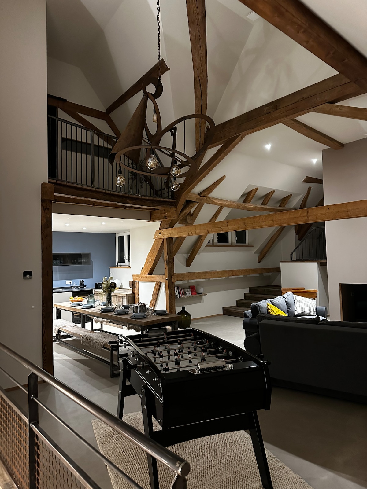 EyerHof, mis kuulub Eyeri perekonnale kolme põlvkonna jooksul - üle 120 aasta vana talumaja, mis renoveeriti täielikult 2019.-2022. aastal ja ühendab nüüd talumaja erilise võlu kaasaegse tööstusliku stiiliga. Terrassi, aia ja aia kõrval on grillimisjaam suure uue Rösle 'i gaasigrilliga ja küün, mida saab kasutada hubase puhkeruumina. Maja interjöör ühendab pooleldi puidust kaasaegse triikraua, puidu , liivakivi , saviseinte ja vana uuega 🖤