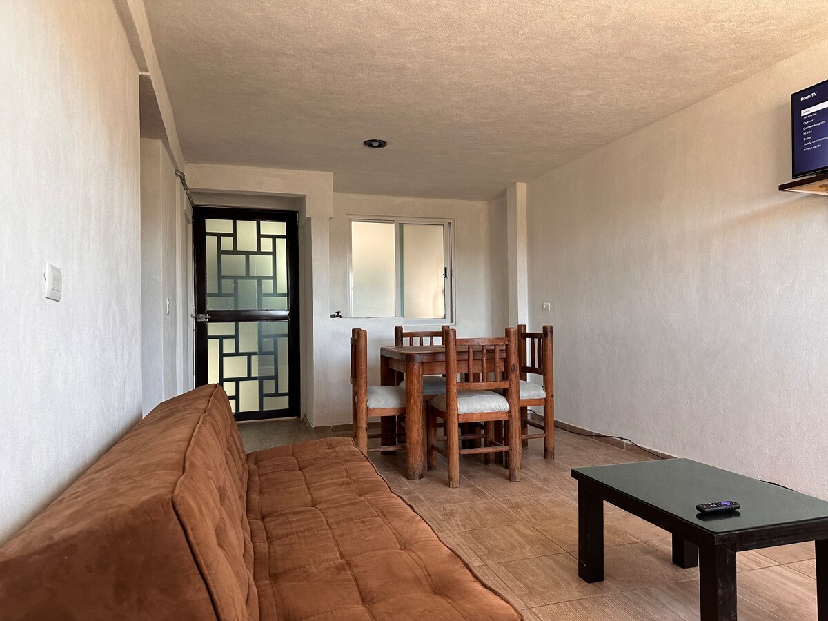 Departamento completo al sur de la ciudad ideal para relajarse ,descansar o para trabajar. Cuenta con recámara cama matrimonial ideal para 2 personas . Si tu familia es grande cuenta con 2 sofá cama para tu comodidad, pantalla S-Mart, internet. Tiene estufa , refrigerador horno de microondas, lo necesario para tu estadía . Baño completo con agua caliente. Y cochera techada con portón eléctrico. Puede recibir hasta 4 o 5 personas , poniéndose de acuerdo antes con el anfitrión. Costo adicional