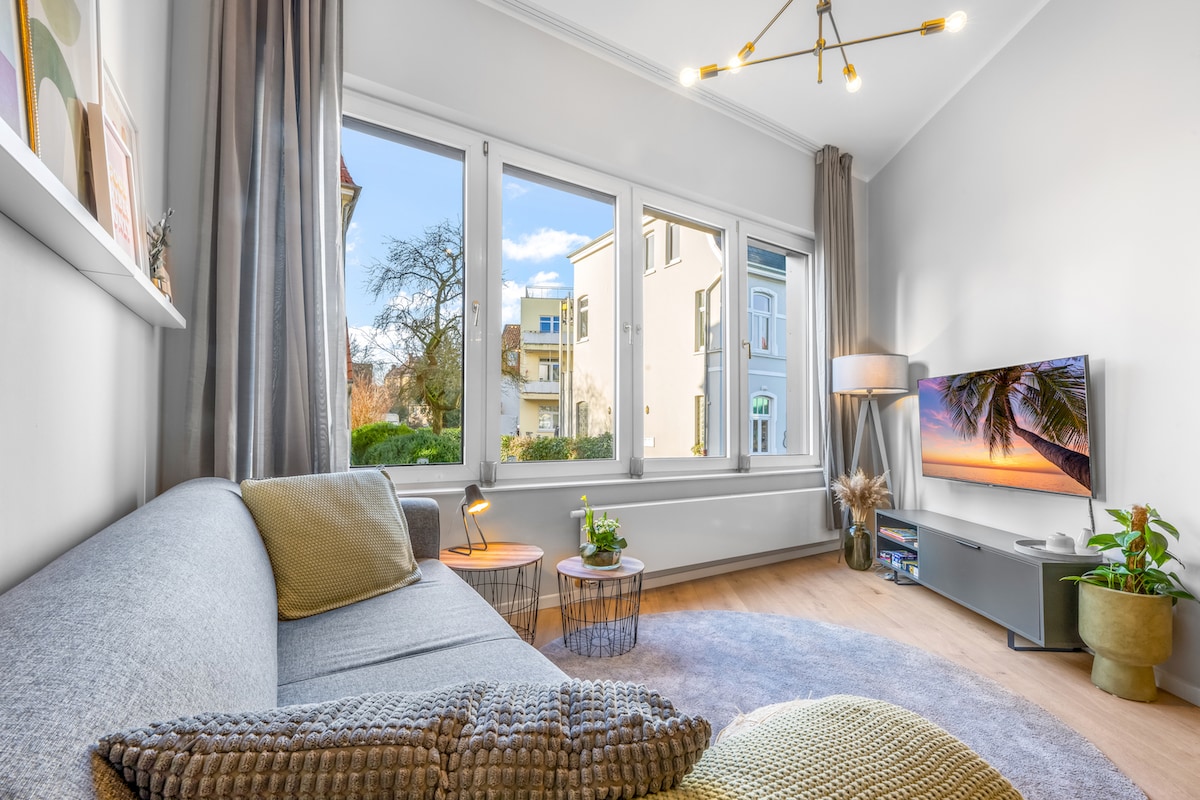 See uhke, täielikult varustatud mittesuitsetav korter (84 m ² / täielikult renoveeritud 2012) asub hõlpsasti keldritunnuses (täielikult päevavalgusega) Ziegelhofviertelis loetletud villas (ehitatud 1910). See pakub piisavalt ruumi kahele inimesele (pluss diivanvoodi elutoas + mugav lisavoodi ühele inimesele = 4 inimesele). Väga maitsekalt sisustatud kõigi kaasaegse korteri mugavustega, kus sa elad siin Oldenburgi südames!