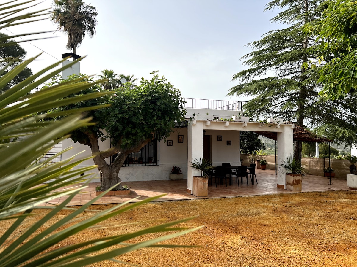 Espectaculares vistas y tranquilidad. Preciosa casa de campo tradicional, renovada con todas las comodidades y con vistas al Parque Natural del Valle de la Murta. La finca de 2 hectáreas de naranjos trepa a través de terrazas hasta el pinar de la montaña, y cuenta con una enorme piscina privada encalada. La casa es un remanso de paz con las mejores temperaturas durante todo el año, con preciosos atardeceres y a solo 5 minutos en coche de los servicios del pueblo, 20 de la playa y 40 de Valencia.