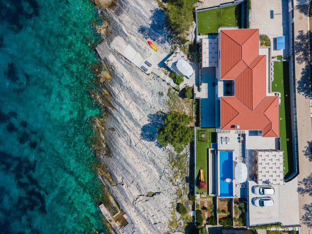 This luxury property is in a beautiful part of the island of Korcula, called Prizba. Prizba is peaceful little place on the south side of the island and it’s reachable by the ferry from the Split or Orebic. What distinguishes this unique villa from others, is the fact that this is the villa on the beach. You can literally access the beach as soon as you step out of the villa. Nothing can beat this experience, for sure.