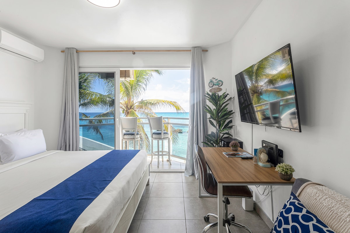Topfloor luxury beachfront studio with level access and breathtaling ocean view at former "Hotel Mont Vernon" in Saint Martin (French side). See 485 ruutjalga stuudio on sinu mugavuse huvides renoveeritud. Korteris on broneeritud parkimiskoht. Külalised võivad nautida ka basseini, mis avaneb Orient Bay rannas.