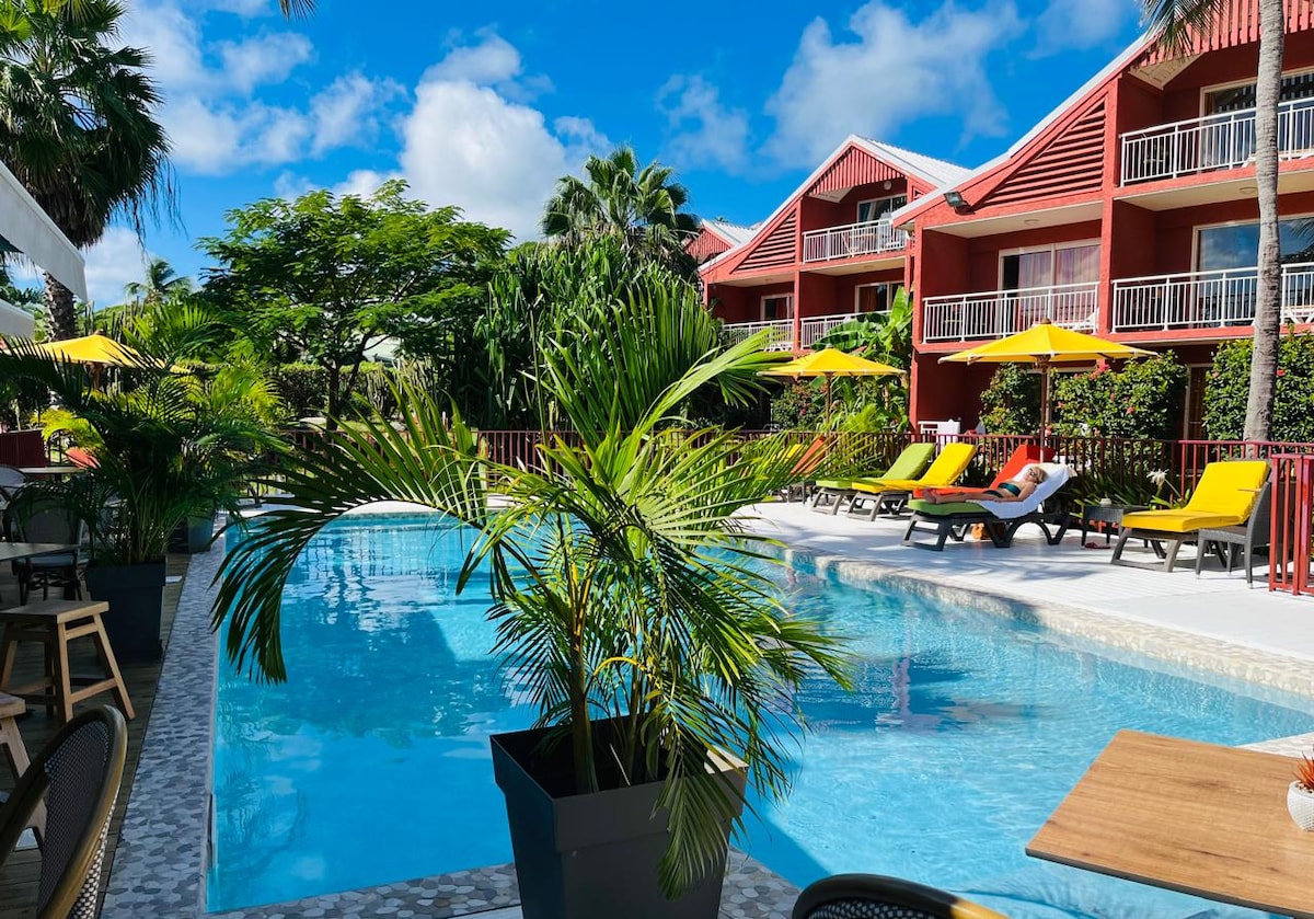 Studio avec piscine, 18m² entièrement rénové en 2023. De plein pied, dans une villa tropicale , entrée indépendante. Très belle terrasse de 30m². Quartier calme et sécurisé. Plage de la Baie Orientale et place du village à 3 mn à pied. Salle d'eau, cuisine avec four et four micro ondes, cafetière Nespresso, grille pain, lave linge, frigo, linge de toilette. Epicerie, restaurants, boulangerie, épicerie fine, coiffeurs et nombreux services à 200 mètres. WIFI haut débit par la fibre.