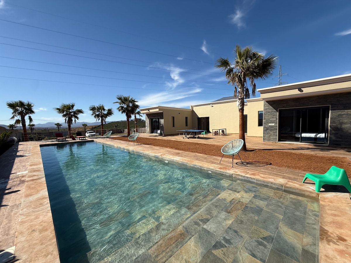 Welcome to our stylish and comfortable villa in Berkane, close to the beautiful Saidia Beach. This spacious villa is ideal for families, friends, or small groups looking for relaxation, privacy, and sunshine. With a private pool, large terraces, hammocks under the grapevines, and a big outdoor space, this home immediately feels like a holiday retreat!