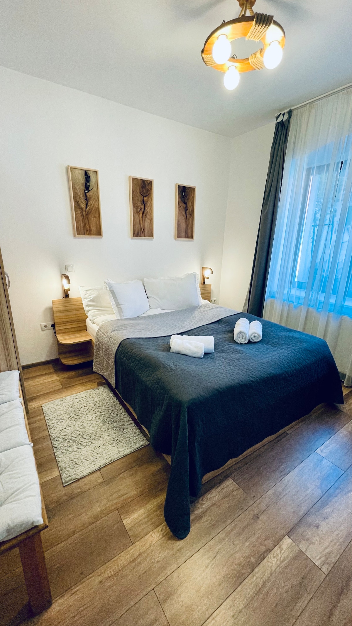 Tere tulemast rafineeritud 64 m² suurde korterisse Binderi järve lähedal, mis asub The Lake Home Residence'is. Pehme disain ja kaasaegne mugavus kohtuvad rahulikus elamukeskkonnas. Kõikjal on hoolikalt paigutatud originaalseid kunstiteoseid, mis lisavad sellele majutuskohale isikupärast loomingulist energiat. Korteris on rahulik magamistuba, avatud elutuba, täielikult varustatud köök ja privaatne rõdu. Haruldane vann ja privaatne parkimine täiendavad kogemust, mõne minuti kaugusel Sibiu ajaloolisest keskusest.