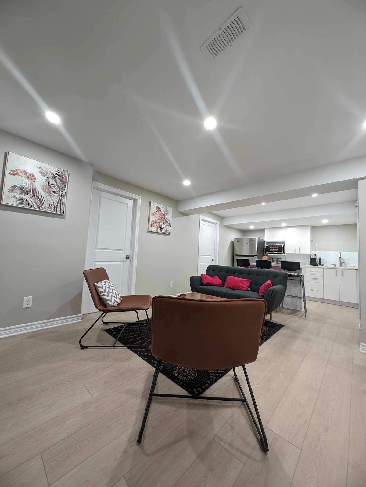 Koge mugavust ja stiili meie värskelt viimistletud kaasaegses avatud köögis ja elutoas. Varustatud teleri, külmiku/sügavkülmiku, mikrolaineahju/ahju, õhufritüüri, pesumasina ja kuivatiga. Vaid 8 minuti kaugusel lennujaamast, 20 minuti kaugusel kesklinnast ning jalutuskäigu kaugusel toidukaupadest, kohvikutest, parkidest ja restoranidest. Naudi privaatsust eraldi sissepääsu ja turvalise magamistoaga, millel on oma lukustatud võtmed. Vaikne naabruskond, ideaalne äri- või puhkusereisiks. Broneeri kohe meeldejäävaks peatumiseks Ottawas!