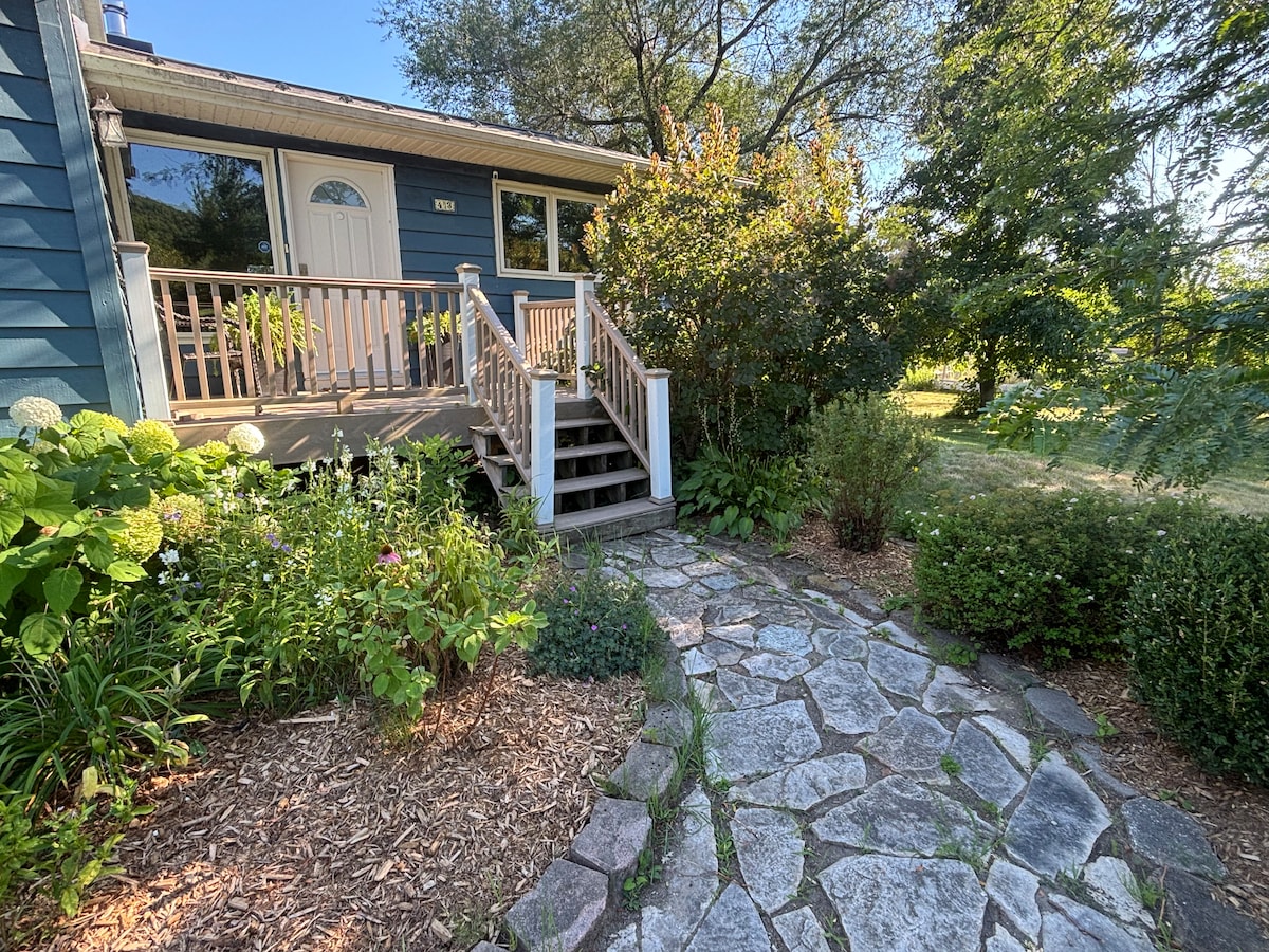 Ilus 600 ruutjalga sviit Executive-bangalos, täiesti privaatne ilma ühiskasutatavate aladeta. King-suuruses voodi, jalutuskäik kiltkivist duširuumis, eraldi sissepääs. Maitsekalt sisustatud Egiptuse puuvillase voodipesu, diivan, lamamistool, söögilaud ja toolid. Külmik, sügavkülmik, mikrolaineahi, pliit, konvektsioonahi, kohvimasin, veekeetja, veekeetja, kõik nõud,söögiriistad ja kööginõud. Ilus vaade vaiksele maapiirkonna kinnistule. 5 minuti kaugusel Kemptville 'i kesklinnast. Juurdepääs ka pesumasinale/kuivatile!