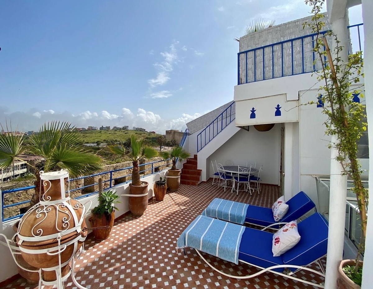 Riad climatisé à votre disposition dans sa totalité et de façon exclusive, Un vrai havre de paix au cœur de l'ancienne médina. Riad rénové alliant charme de l'ancien et confort moderne. vues dégagées depuis les deux toits terrasses l’une sur le port de pêche l’autre sur les toits de la médina. Accès facile depuis le Parking à proximité BAB CHAABA.