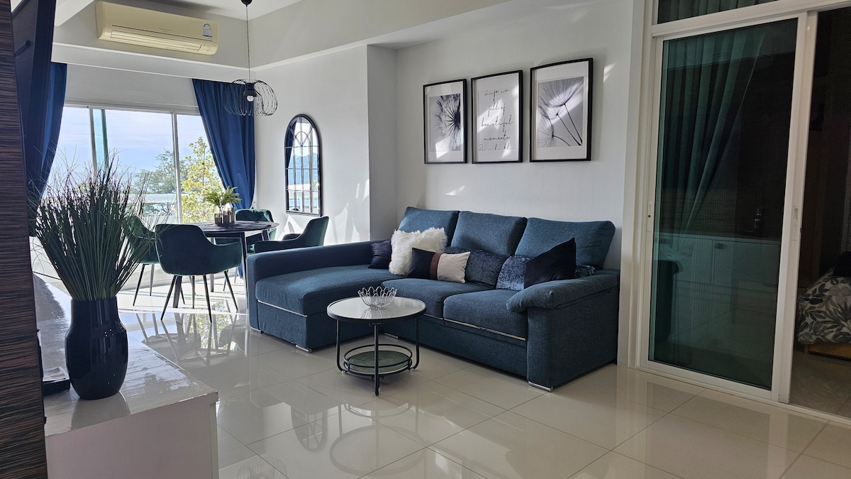 Read full description before booking, including "Show more". This penthouse's contemporary design and panoramic views will sweep you off your feet. Prepare dinner and hang out by the kitchen countertop, or watch Netflix with a view, this penthouse can make most activities memorable. Just 650m to the beach and located in project featuring a huge swimming pool, as well as a gym and sauna. The penthouse is well equipped with lots of amenities and close to restaurants, massage parlours, bars.