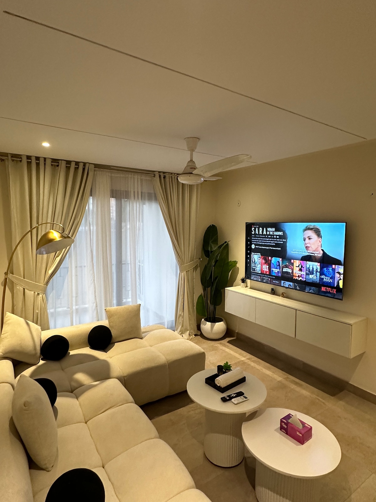 See hubane ja hästi hooldatud korter asub Gulbergi südames, mis on üks linna kesksemaid ja turvalisemaid piirkondi. Ideaalne nii lühi- kui ka pikaajaliseks peatumiseks. Majutuskoht on läbimõeldult kujundatud nii, et see pakuks mugavust ja käepärasust. Ootesaali on paigaldatud suur 65-tolline teler, mis tagab sinu suurepärase lõõgastumise. Sinu nälja vajaduste rahuldamiseks on ka 5,8-jalane söögituba. Suur DIIVAN, mis pakub sulle väärilist esmaklassilist õhkkonda.