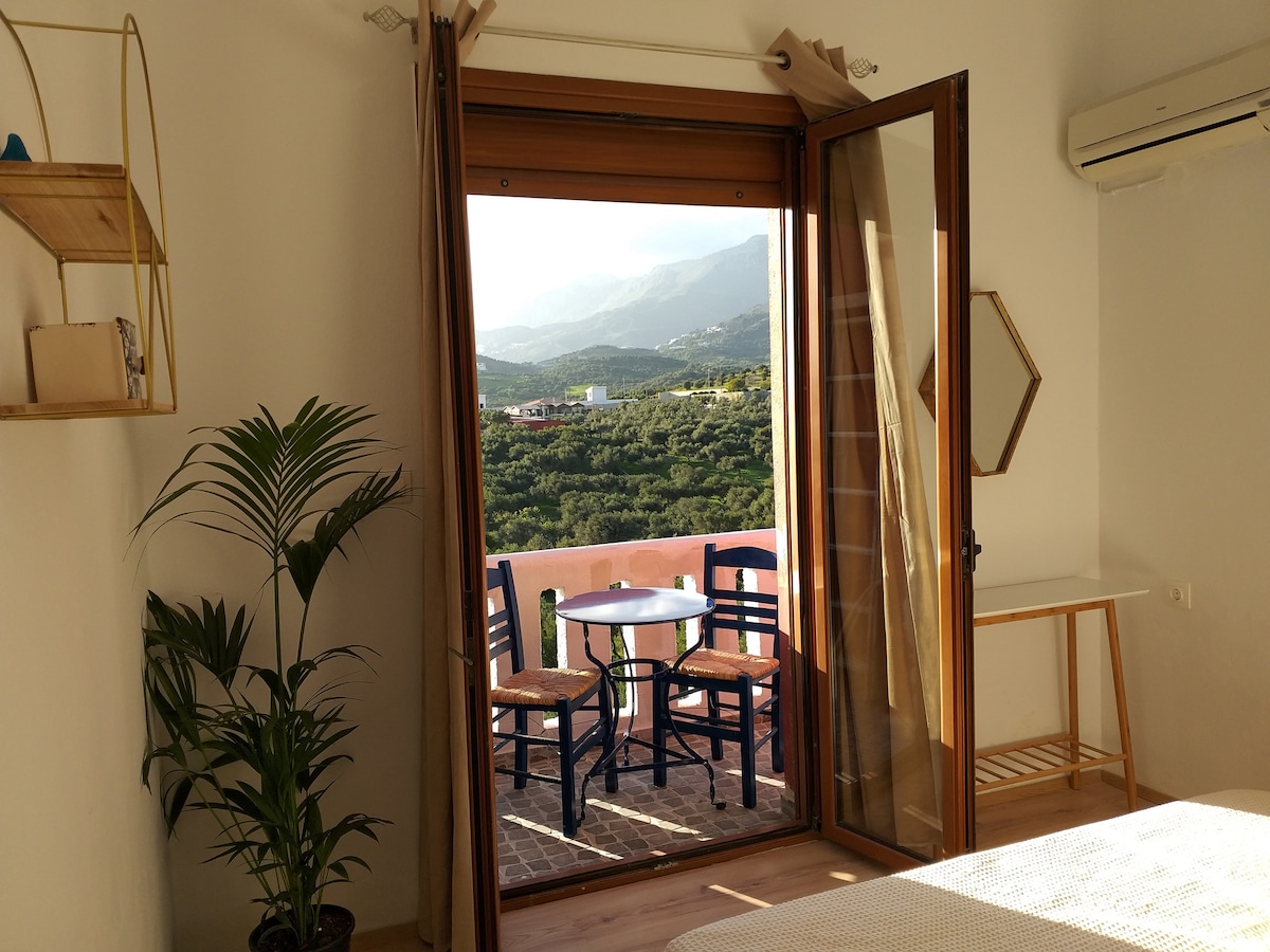 This private double studio is located on the top floor of the property under the name "Eleni Goumenaki Plakias Studios", the house is less than 5 minutes from the village's center and the closest beach. It has a long, uncovered private balcony with beautiful view to the sea and the village below.