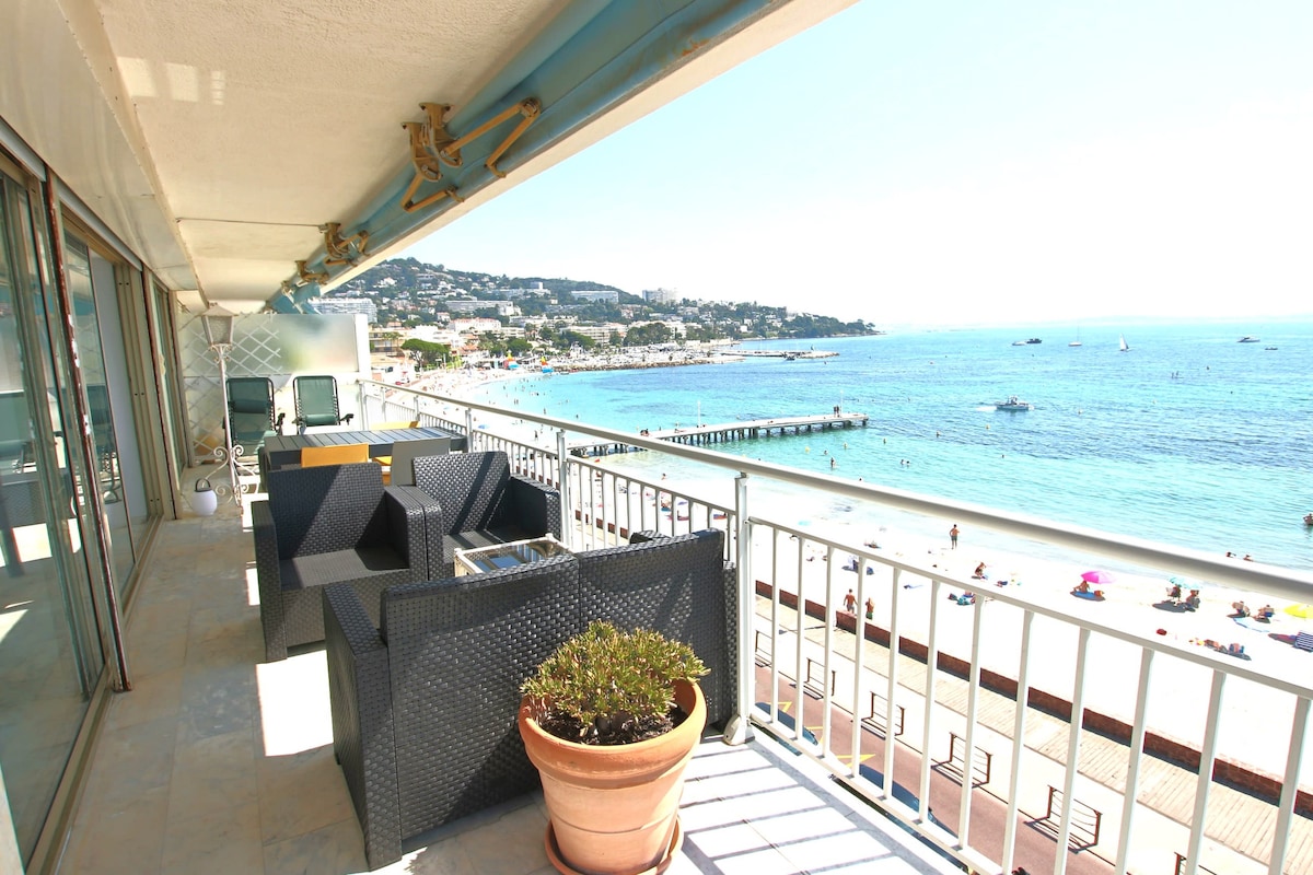 Renoveeritud tipptasemel korter OTSE RANNA ees, vaid 10 SEKUNDI jalutuskäigu kaugusel rannast, otse CANNES 'IS. PALM BEACH Elutuba, mille põrandast laeni ulatuvad aknad avanevad ainult sulle mõeldud PRIVAATSELE AIATERRASSILE 2 mugavat magamistuba. 2 dušši 2 wc. Soojendusega, kliimaseade Kvaliteetsed seadmed. Kiud TASUTA PARKIMISALA. Bussijaam KAUPLUSTE RESTORANID CANNES 'I stiilne ja turismipiirkond Croisette PALM BEACH PAKUTAKSE hommikusöögikorvi ja KORISTUSTASU.