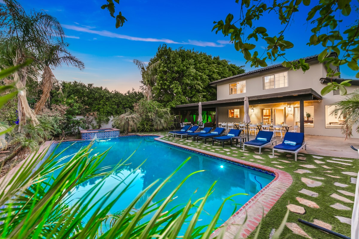 Top 5% home & “GUEST FAVORITE” by AirBnb. This 3 year old stunner awaits you in the coveted hillside enclave of The Mesa, just minutes from the best of downtown P.S. The mid-century inspired home has 3 bedrooms, 3 en-suite bathrooms, 14 ft. ceilings, sliding glass doors, Bosch appliances, exhibition grade art, 2 car garage, sunken living room, fire pit, outdoor sofa / dining area, salt water pool & hot tub. It delivers high style, elegance and privacy.Operated by a local 5⭐️ owner.