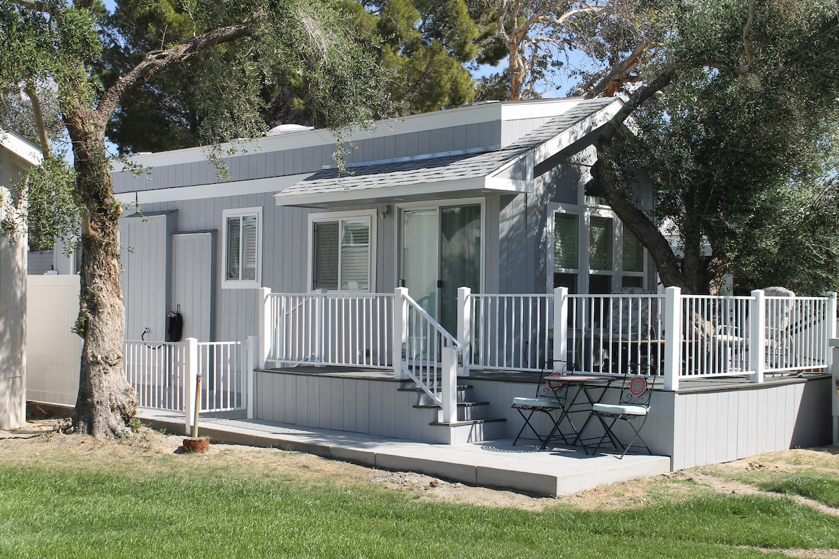 Naudi seda ja võta rahulikult selles ainulaadses ja rahulikus puhkepaigas! See on väikemaja/haagissuvila, mis asub kauges kuumaveeallikatega kuurordis. Lõõgastu tervendavates mineraalsetes basseinides ja mullivannides, mis asuvad vaid kahe kvartali kaugusel! Naudi kõiki puhkekeskuse mugavusi. Matka läheduses või sõida Joshua Tree rahvusparki. Avasta Palm Springsit, mis asub 25 miili kaugusel. Tee õhtune jalutuskäik läbi selle sõbraliku kogukonna. Ja pärast täiuslikku päeva vaata parte tiigis ja päikeseloojanguid mägedes!