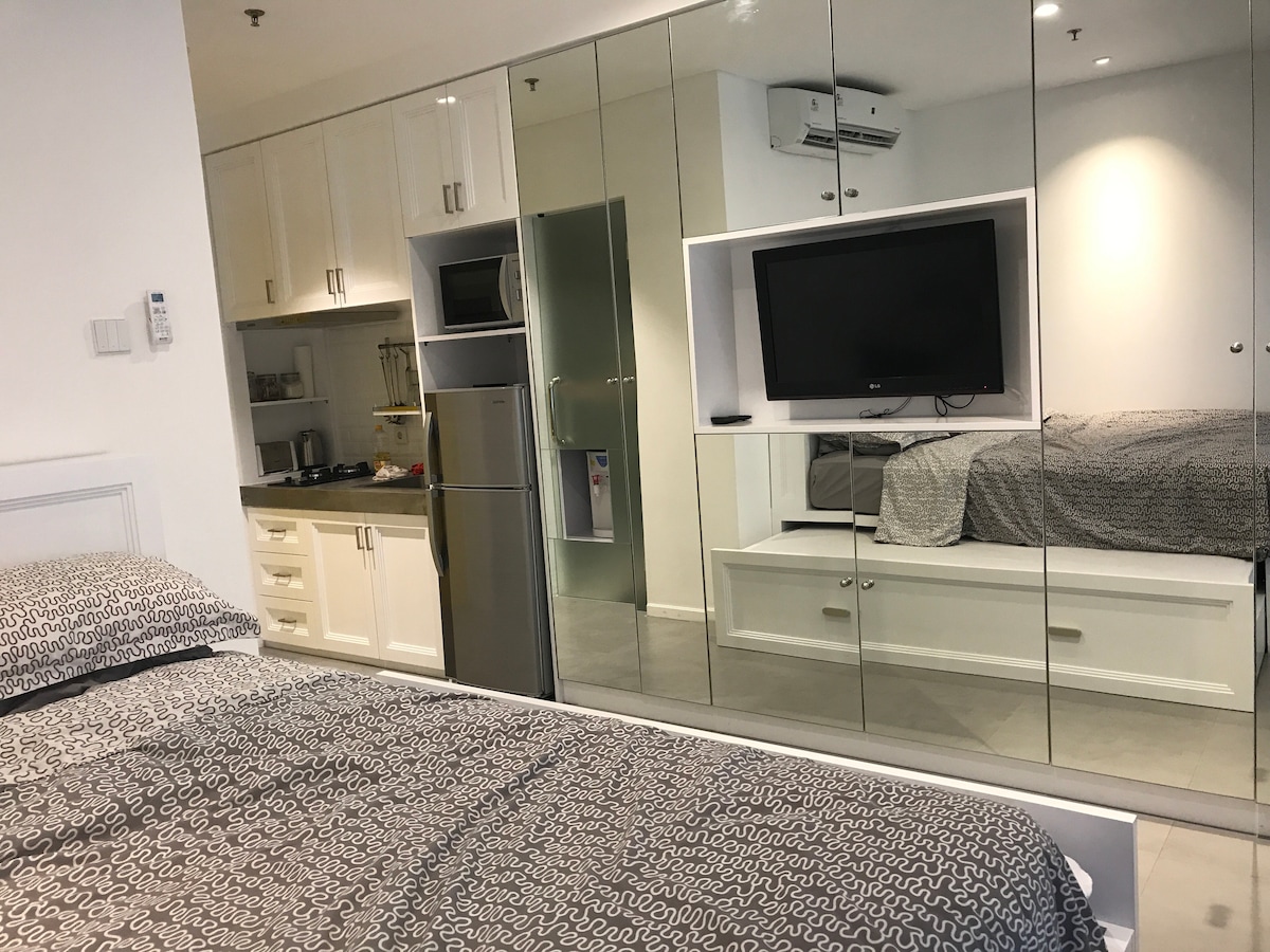 CIKINI piirkonnas asuv mittesuitsetatav stiilne stuudiokorter, mis asub Kesk-Jakarta kesklinnas. Leiad end Jakarta ärikeskuse läheduses, kus on erinevad vaatamisväärsused, kohvikud ja söögikohad jalutuskäigu kaugusel. Pane tähele, et suitsetamine ja/või veipimine on toas, vannitoas ja rõdul rangelt keelatud. Kui sa ei saa siseruumides suitsetamisest ja/või veipimisest hoiduda, ei pruugi see olla ideaalne koht sinu peatumiseks.