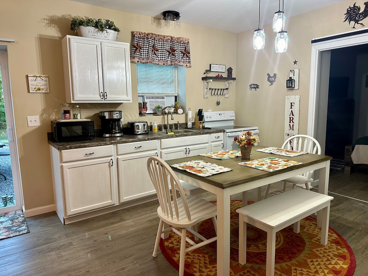 Lõõgastu selles rahulikus ja stiilses majutuskohas. Tule naudi oma majutust meie väikeses, omapärases ja kutsuvas väikemajas, mis asub rahulikus riigis. Kinnisvara on ajaloolise Southside 'i turu, ajaloolise Collinsville' i lähedal ja lühikese autosõidu kaugusel ilusast Charlotte 'ist, TN-i, kus saad osta nende ainulaadset talu valikut laua- ja käsitööpoode. Ainult 14 miili Clarksville 'i, TN-i, 26 miili Dicksonini, TN-i ja 42 miili Nashville' i! Lõõgastu maal ja naudi kõige selle ilu ja rahulikkust!