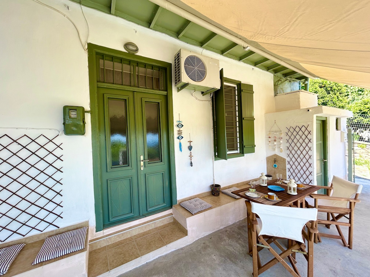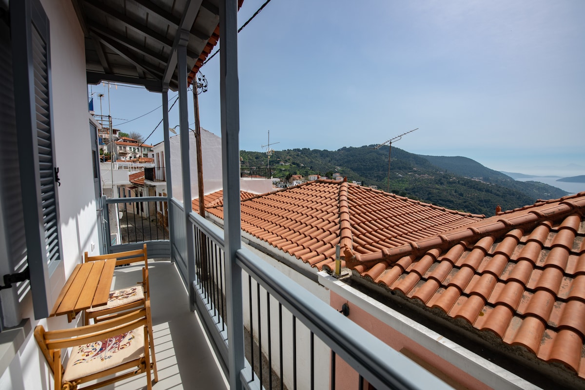 Rious House kohe legendaarse rohelise purskkaevu kõrval! Maja asub Glossa küla kesklinna lähedal. See on ühekorruseline maja. Seal on 1 magamistuba kaheinimesevoodiga, elutuba kaheinimesevoodi ja vajaduse korral üheinimesevoodiga, suur köök ja suur vannituba. Hingematvalt rõdult avaneb vaade Egeuse merele, Skiathosele ja Euboeale.