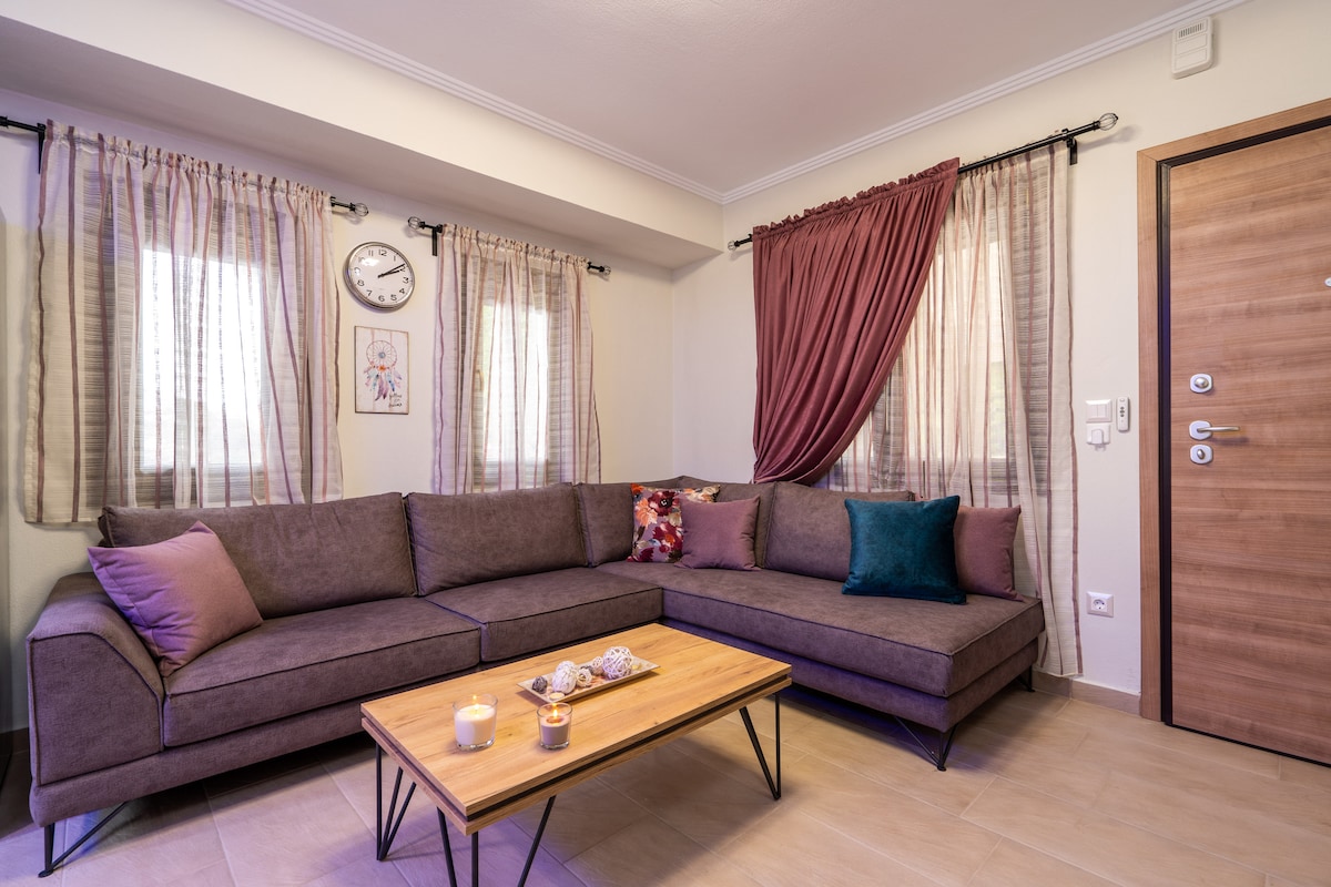Kaunilt sisustatud kaasaegne korter Elani rahulikus osas - ideaalne paaridele. Naudi privaatset terrassi, kust avaneb vaade merele ja Olympuse mäele, ning unustamatuid päikeseloojanguid. Korteris on king-suuruses voodi, kaasaegne vannituba koos vihmadušiga, hubane elutuba diivani ja teleriga (Netflix ja Disney+) ning kiire ja usaldusväärne internet. Köögis on põhimugavused ja Nespresso kohvimasin. Ümbritsetud rohelusest ja rahulikkusest, kuid kaunite randade lähedal – ideaalne koht lõõgastumiseks.