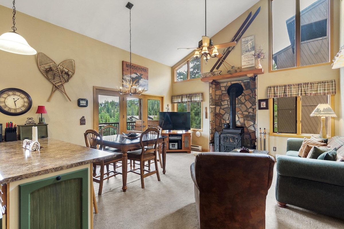 Selles 5 magamistoaga/3,5 vannitoaga ridaelamus Peak 9-l. Ühe kvartali kaugusel suusatamisest ja 3 kvartali kaugusel peatänavast. 2600 ruutjalga üle nelja korruse pakub ruumi ja privaatsust ning kõrguvate männipuude keskel olemise õhkkonda. Muude mugavuste hulka kuuluvad täielikult varustatud ja uuendatud köök, suure lauaga söögituba, elutuba gaasikaminaga, privaatne mullivann, pesumasin/kuivati, 1 auto garaaž, kolm terrassi ja juurdepääs basseinile. Lihtne juurdepääs matkamisele. Asub Snowflake Run/Lifti vastas.