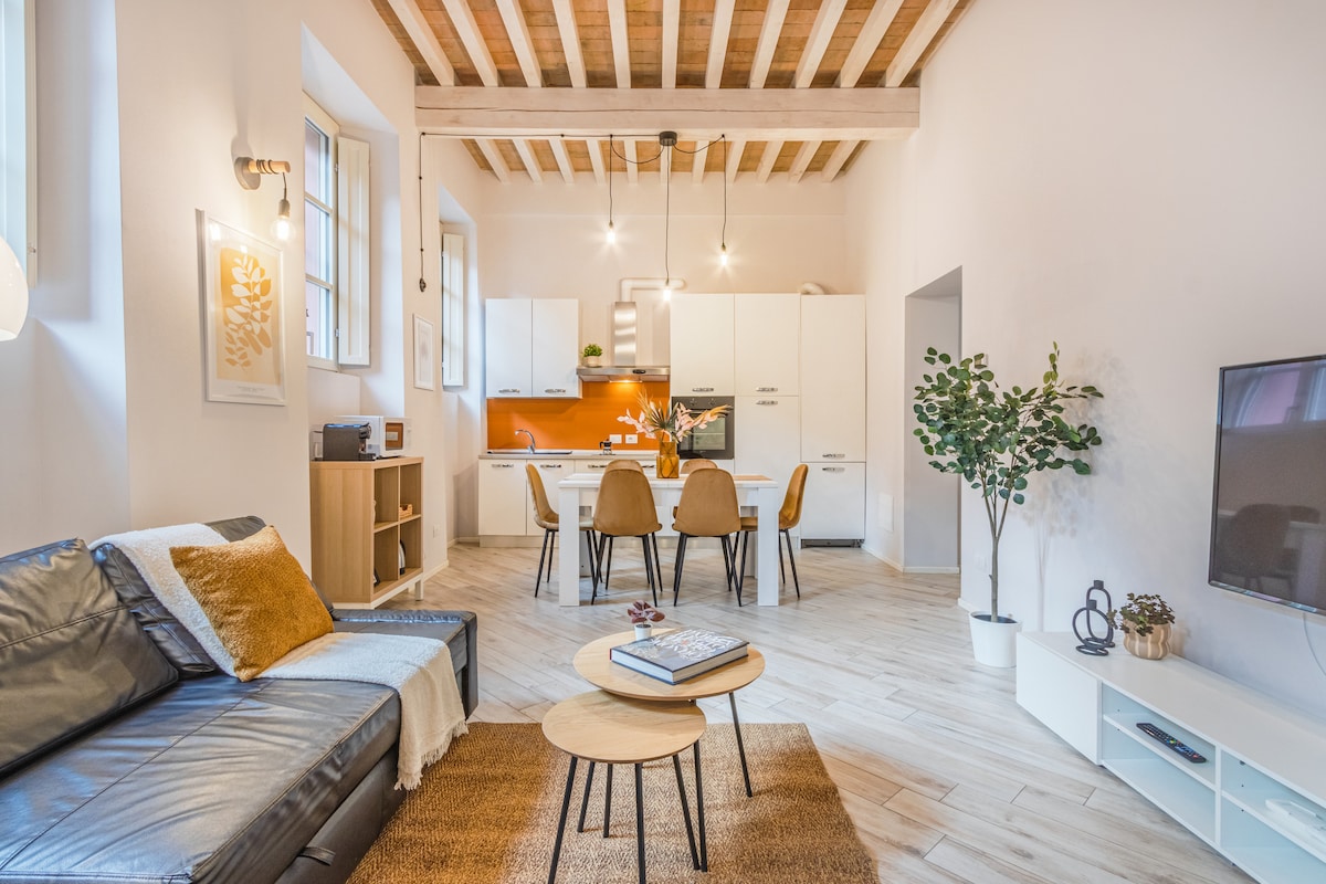 In the heart of one of the most charming villages in the historic centre, just a few steps away from the wonders of Parma and only a 5-minute walk from the station, a charming loft welcomes you, newly renovated with fine finishes and the highest energy standards. Located on the 1st floor (with lift) of an elegant period building, it combines the charm of history with modern design, total comfort and surprising quietness. Ideal for smart workers, couples and families seeking beauty and comfort.