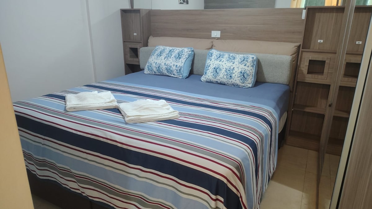 ESPAÇO EXCLUSIVO PARA O SEU USO 🌿 Região residencial, tranquila e segura, com mercados, padarias e comércios próximos. 🛌 Acomodação para até 4 pessoas • 1 cama queen • 2 colchões de solteiro (sofá bicama que se transforma em duas camas individuais) ❄️ Ar-condicionado em todos os ambientes 📶 Wi-Fi rápido (300 Mbps) 📺 Smart TV 🍳 Cozinha americana compacta e equipada 🛏️ Enxoval completo (roupa de cama e toalhas) 👕 Ferro de passar roupa 🔐O acesso é totalmente feito por senha eletrônica.