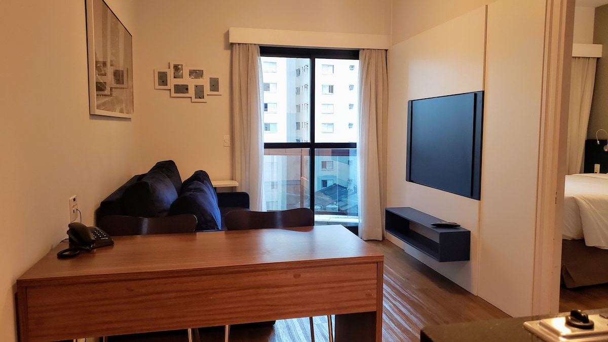 Konditsioneeriga korter, privaatne vannituba, lameekraaniga televiisor, mida saab kasutada magamistoa või elutoa jaoks, tasuta wifi, töölaud, elutuba ja varustatud kööginurk ning parkimiskoht. Hoones on ka esimese korruse restoran, hästi varustatud jõusaal ja bassein. Shopping JK Iguatemi this 100m as well as Parque do Povo The closer airport is the Congonhas Airport about 6km. Ühistransport, nagu metrooga ühendatud bussid ja rongid, kõik lähedal.