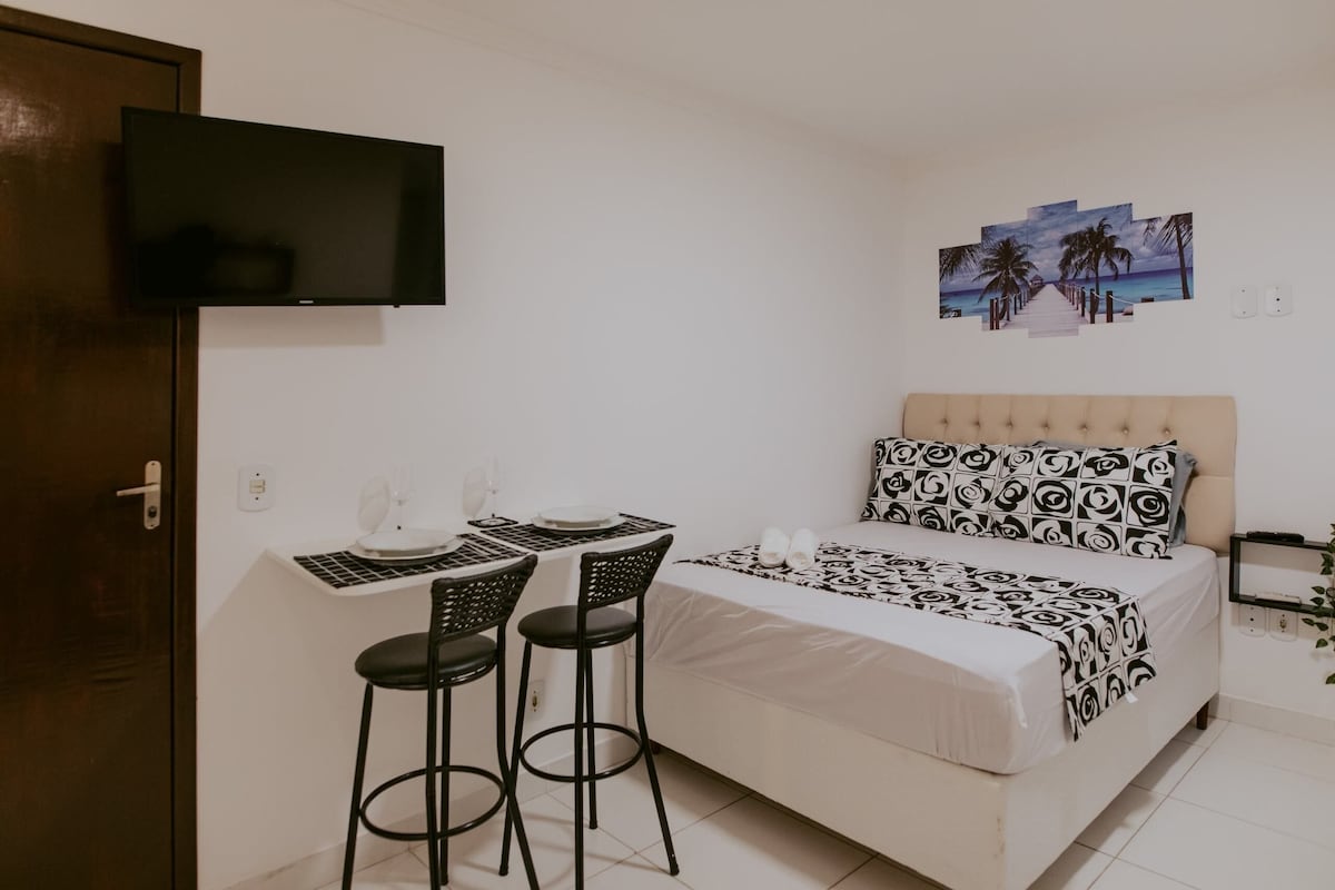 Hubane ja praktiline majutuskoht, ideaalne 01 inimesele (max 2), suurepärase asukohaga Jardim da Penhas. Hoone treppidega, teine korrus. Läheduses: supermarket, pagariäri, jõusaal, apteek, UFES, kirikud. Kaheinimesevoodi, wifi, kombineeritud kliimaseade, hea dušš.