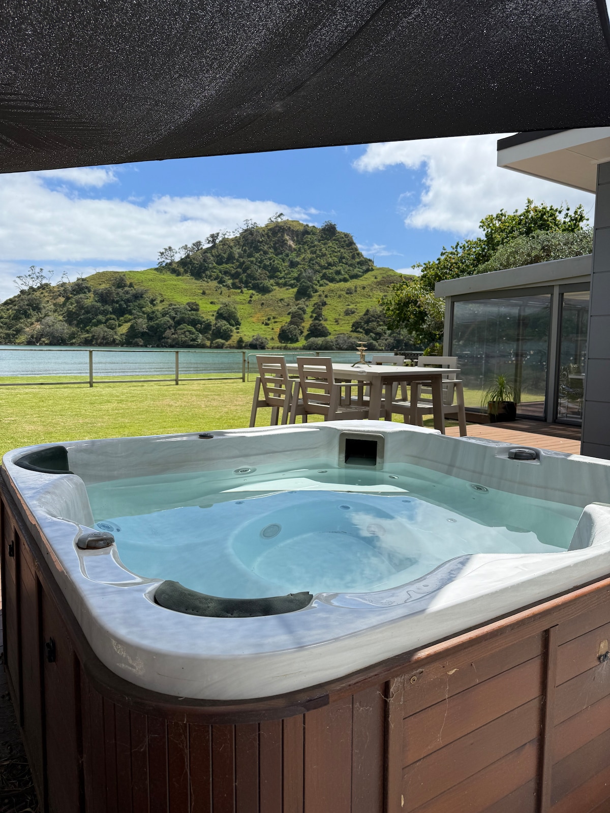 BEACH FRONT BACH Wake to the sound of waves lapping. Pataua South is an idyllic spot 30 km east of Whangarei via a picturesque coastal drive. WE SPECIALISE IN 1 NIGHT STAYS, PETS WELCOME Step through the gate of our fenced property, into the sandy estuary. Two kayaks, 2 Naish paddle boards and 2 adult vests. Exclusive use Hot Springs spa. Reliable FIBRE WIFI A great place for celebrations, catchups and enjoying a peaceful coastal location. Owners often on site in sleepout 20 m behind bach.