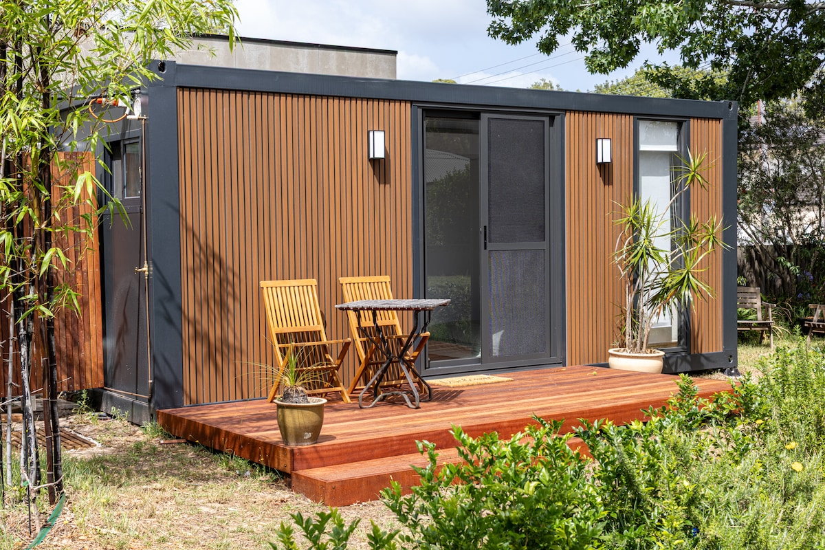 Auhinnatud väike maja Crystal Avenue'i rannapoolses otsas. Ideaalne paarile või väikesele perele; lemmikloomad on samuti teretulnud. Oma vihmametsade (piirideta) aias, mis asub tänavast ja naabritest tagasi ja on peidetud selle taga asuva peamaja eest, on privaatne ja vaikne. Kõik, mida kuuled, on linnud ja lained. Sees on avatud planeeringuga eluase, hubane magamistuba vaatega aiale ja avatud lofti teine magamistuba oma rõduga.