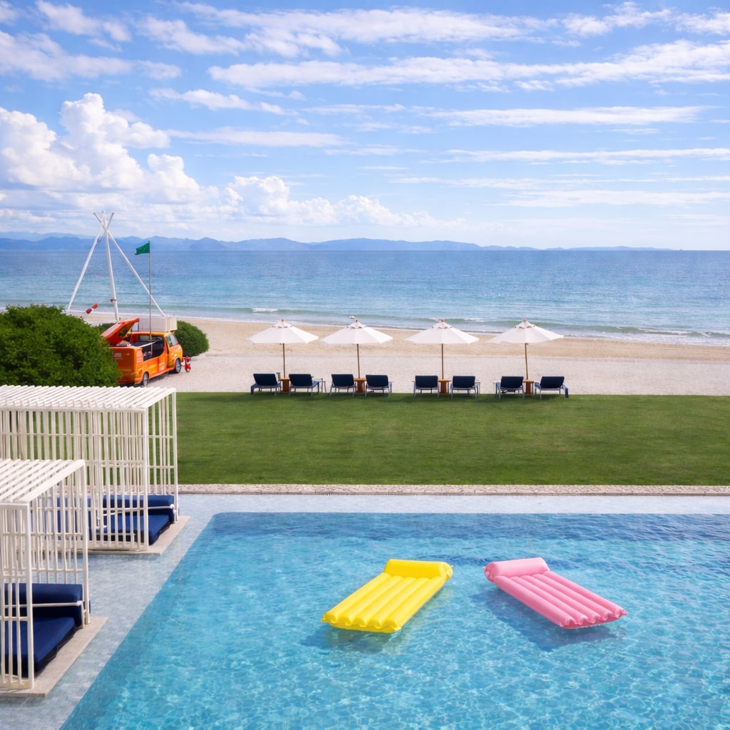 Juurdepääs rannaäärsele basseinile koos privaatse terrassiga