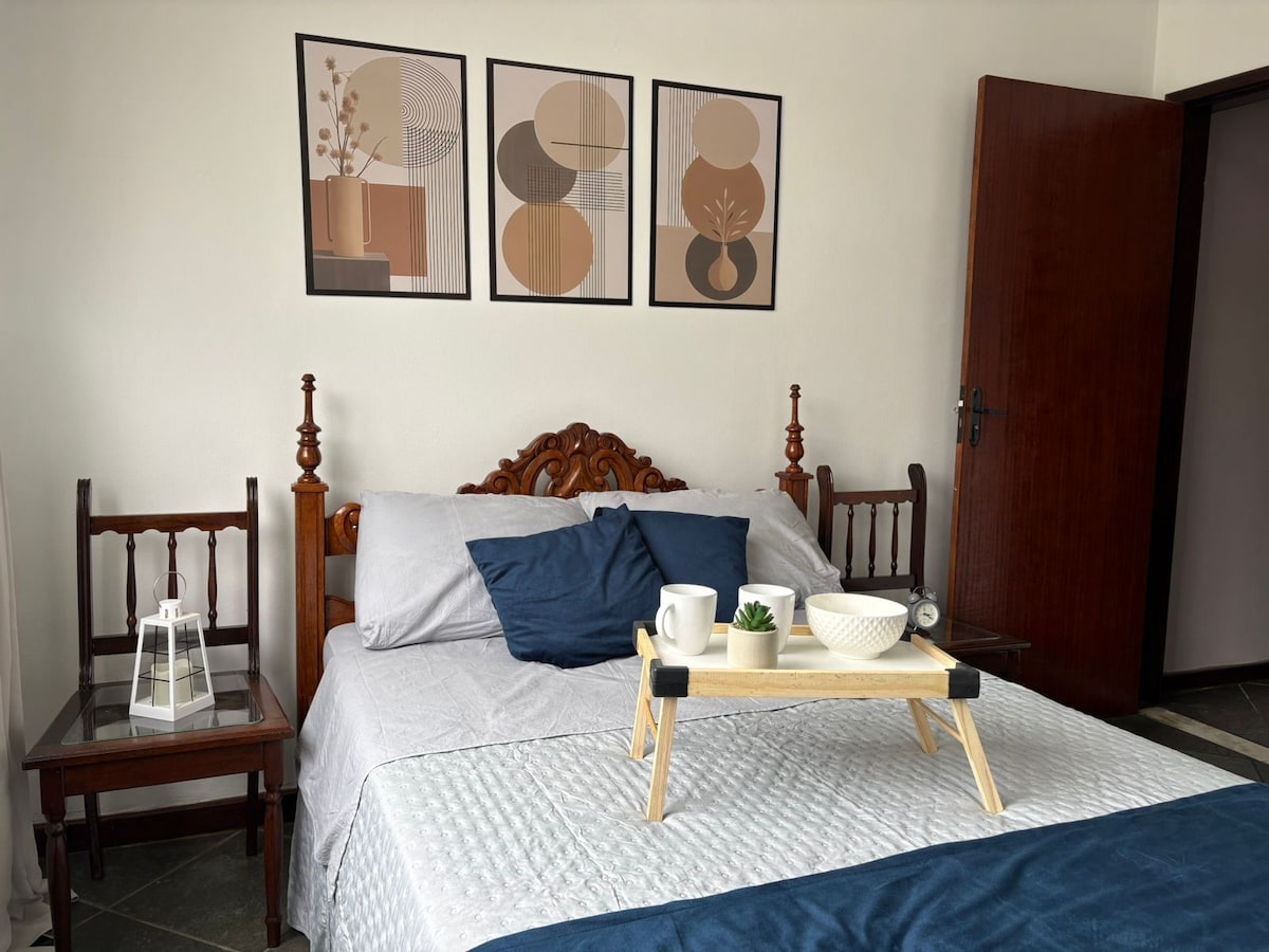 Avar ja külalislahke puhkekoht sinu perele Paty do Alferes 'is! Aconchego Serrano 03 pakub 2 magamistuba, elutuba, suurt rohelise Ubatuba marmorist tööpinnaga kööki ja ruumi kuni kuuele inimesele väga mugavalt. See asub Avelari naabruskonna keskel, väljaku, aia ja väljakute lähedal. 20 minuti kaugusel Miguel Pereirast, ideaalne, et nautida parimat maaturismi. Garaaž, wifi, lemmikloomasõbralik ja paindlik saabumine.