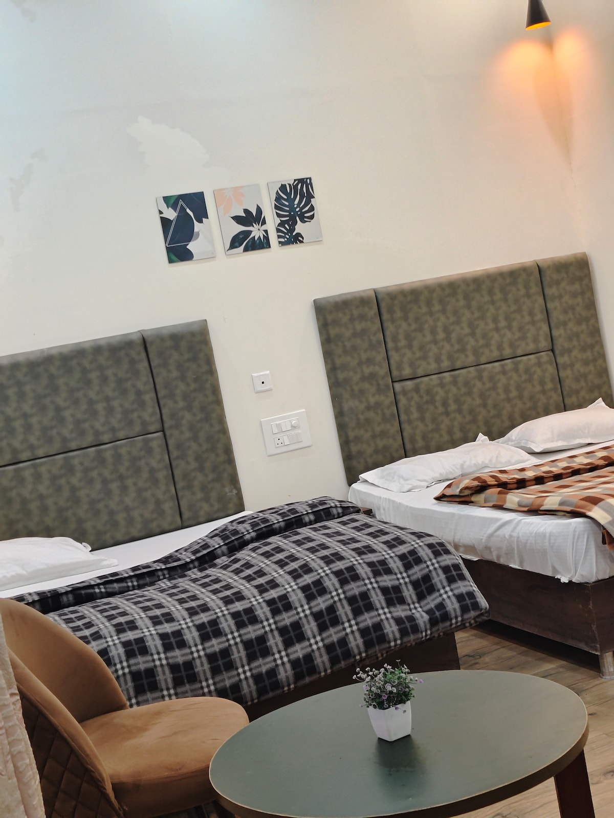 Escape to a peaceful Rishikesh retreat with stunning Ganga & mountain views. This cozy unit sleeps up to 3 guests with 1 bedroom, attached bathroom, and an extra mattress. > Enjoy a private balcony with outdoor seating, > Surrounded by top cafes > Just 1.5–2 km from the Ganga River & Laxman Jhula. Perfect for families, small groups, or anyone seeking comfort and serenity in the yoga capital of the world.