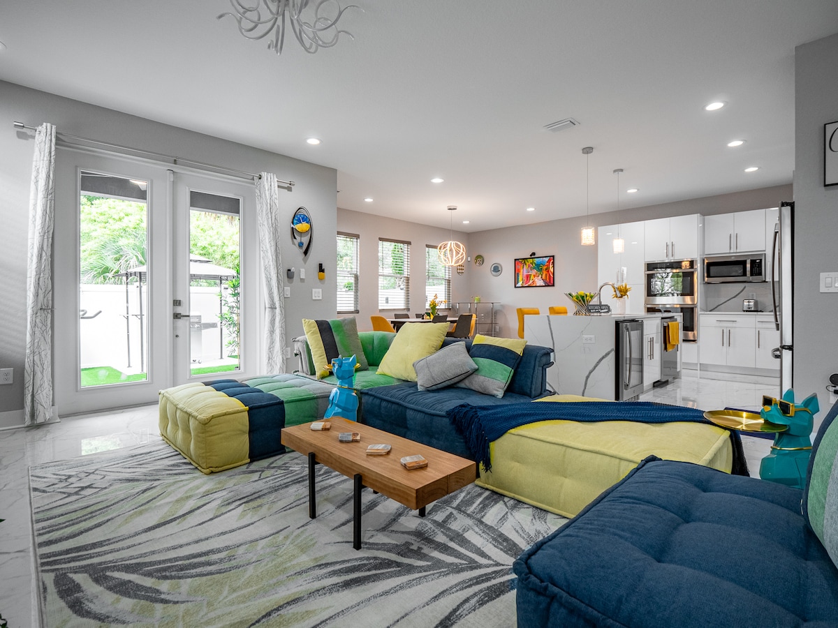 KAHJUSTUSI JA TÄISVÕIMSUST POST-MILTON tsentraalse asukohaga Tampa Stunner mullivanniga! Kaasaegne stiilis majutuskoht, mis asub Tampa kesklinna, Riverside 'i, tööde, Amalie areeni ja muu lähedal! Naudi lopsakat interjööri, kus on troopilisest metsast inspireeritud 3 magamistuba/ 2,5 vannituba. Naudi pereliikmeid ja sõpru hubases, kuid avaras avatud elutoas . Naudi päikese käes või naudi õrna tuult, kui grillid tagahoovis Paradiso palmipuudes. Sinu oma „väikesed peopesad“ rahulik põgenemine. Hablamos Español.