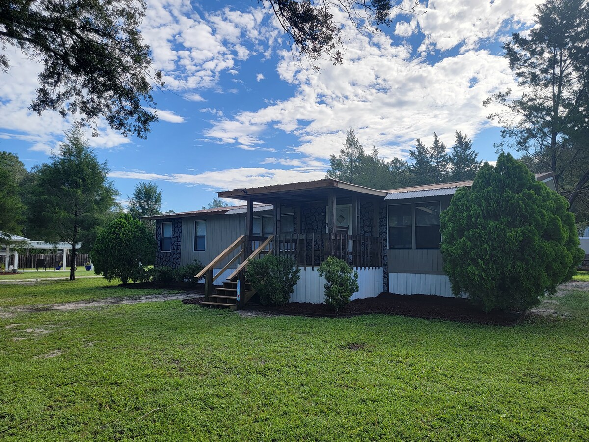 Super cute and spacious private 3/2 home on 4 acres really lets you enjoy the rural country life without the chores. Only a few miles from several springs and the Suwanee river. (Literally have 10 springs within 39 miles). A few of the springs are: Little River Springs (my favorite), Ichetucknee springs, Ginnie Springs, Royal spring, Charles Springs, Rum Island, Hart springs, Blue Springs, Poe springs and so many more. While our home may not be perfect, its our perfect country get away