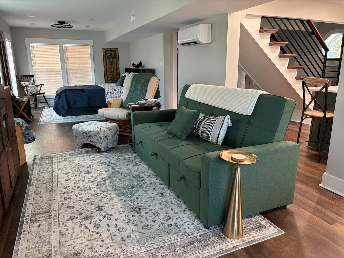 Kogu sinu külalistemaja, mis asub peamaja taga. Stuudiokorter, kus on köök (kerge ettevalmistus), magamistuba, vann, kapp ja kaetud parkimiskoht. Minimaalne, kuid toimiv ala, kus on ruumi hingata. Asub Wrightsville 'i ja Surf City/Topsaili randade vahel ning kiire sõidu kaugusel Wilmingtoni kesklinnast. Vaikne ja rahulik, 1,5 aakri suurune väravaga majutuskoht. Naudi loodust ja lõõgastu pärast lõbusat päeva.