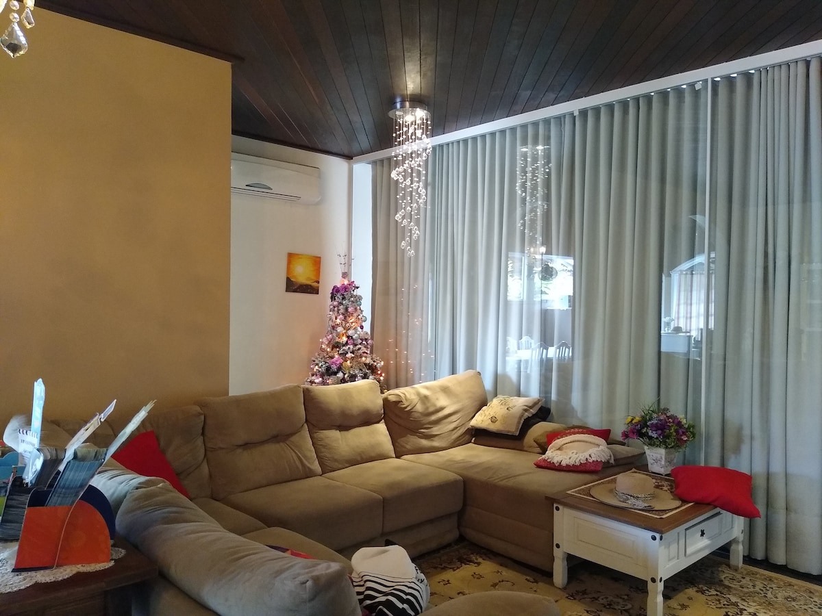 Ambiente familiar, tranquilo e aconchegante. Estamos a 600m da praia e 900m do maior parque temático da América Latina, o Beto Carrero World. Próximo a supermercado, posto de saúde, farmácia, restaurante, hamburgueria, pizzaria, etc. Nossa suíte está equipada com TV, frigobar, ar-condicionado e Wifi. Temos também estacionamento privativo e uma cozinha compartilhada.