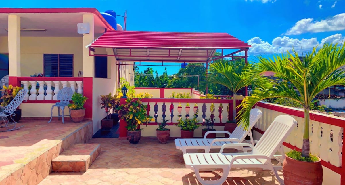 Our guesthouse is close to the Paseo del Prado (300 m). It's very new (2016), modern and cozy equipped. There are 2 guestrooms with comfortable beds (one with a double and one with two single beds). The rooms are with aircon, fan and direct connected bath room with a modern shower. You will like the very nice roof terrace, where you can sit and enjoy the evening with glass of local rum. It counts with a power generator in case of Blackouts.You can also have a good breakfast for 5$ each person