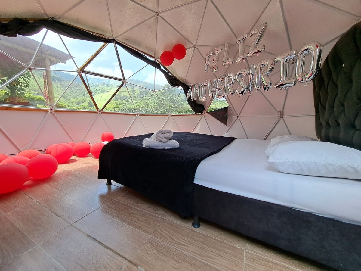 Põgene koos oma partneriga sellesse hubasesse kuppelisse Filandia ja Quimbaya vahel. Ideaalne ainulaadseks elamuseks, mida ümbritseb loodus ja kus on kiire juurdepääs Quindío peamistele sihtkohtadele. Lõõgastu katamaraanivõrgus ja naudi maitsvat hommikusööki. Rahu, mugavus ja romantika ühes kohas. Ideaalne armastuse tähistamiseks! Pane tähele, et majake asub Filandia pargist 9,6 km kaugusel, kuid sinna on väga lihtne jõuda ühistranspordi või erasõidukiga.
