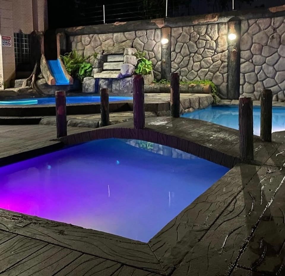 10 suítes, 3 piscinas, toboágua, churrasqueiras.