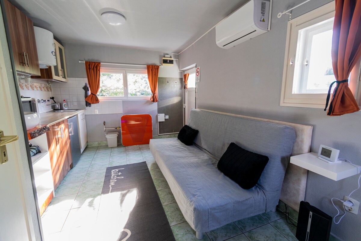 Zsíroshegyi Vendégház in Nagykovácsi, close to Budapest- Small cozy cottage in a private garden, big yard, perfect for relaxation! On the ground floor: living room with open kitchen, dining table and a sofa/pull out bed, and a bathroom with a shower and a washing machine. Above the living area there is a loft with 3 additional beds. The loft could only be reached by a ladder. There is air-conditioning and floor heating in the house. Tourist tax: 300 HUF/d/p (must be payed u/a)