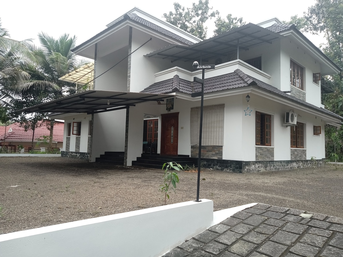 This home has been lovingly built to reflect our ancestral Kerala Tharavadu - a traditional heritage-style house that blends timeless architecture with natural beauty. Surrounded by lush greenery, serene canals, vibrant pineapple farms and rubber trees, it offers a soulful retreat into the heart of nature. 1 hr 20 mins from Cochin international Airport Swiggy food delivery available at the location. Good hotels available at 5 mins drive. 15 mins from Muvattupuzhya. 55mins from Infopark.