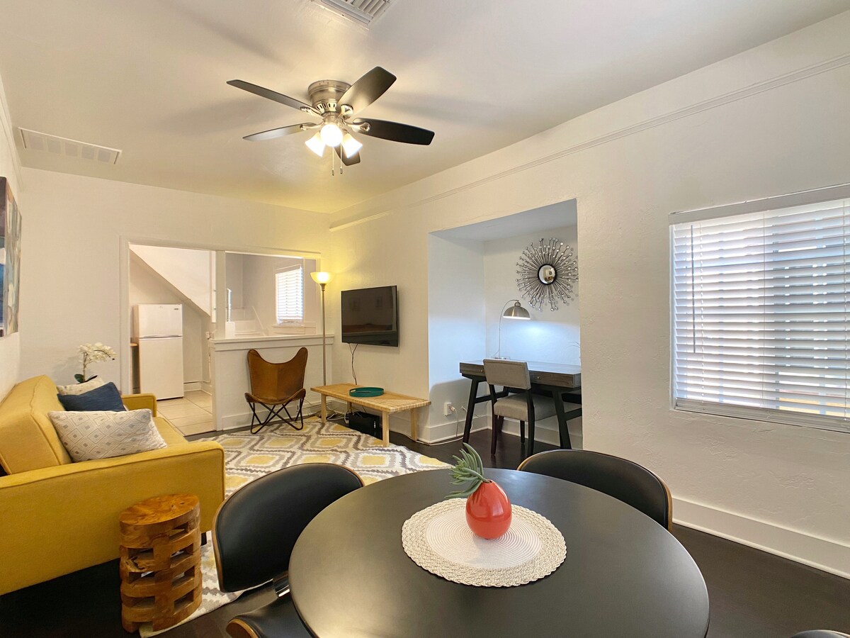★ Naudi parimat kesklinna elamust, viibides samal ajal vaikses ajaloolises naabruskonnas. ★ Roosevelt Row kunstipiirkond, muuseumid, sport, baarid/restoranid ja muusikakeskused (Footprint Center, Chase Field, The Van Buren, Orpheum Theater) 1 MIILI KAUGUSEL ★ Privaatne väravaga sissepääs + parkimine + terrass + 500 ruutjalga külalistemaja elutoa ja mugava queen-suuruses voodiga. ★ Täielikult varustatud köök + söögilaud + täissuuruses pesumasin ja kuivati + hubane terrass