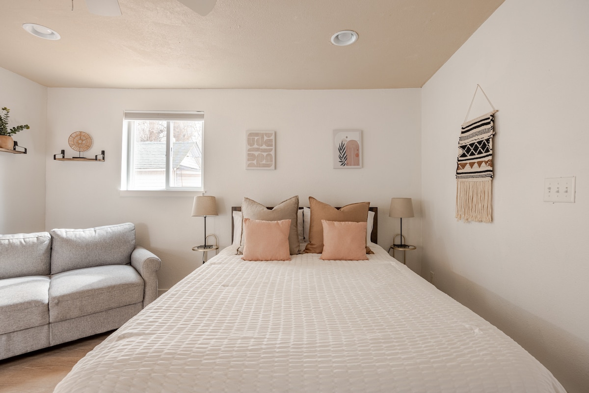 See uhiuus hoone (730 ruutjalga) on kaasaegne ja pakub lisamugavusi, sealhulgas soojendusega vannitoa põrandad, nutikas vannitoa peegel, magamistoa kapp, võlvlaed ja Rokutv, et saaksid oma lemmiksaateid voogesitada. Väike privaatne rõdu ja õueala tähendab, et saad nautida Colorado päikest. Lihtne juurdepääs kõigele, mida Colorado Springs pakub, sest see majutuskoht on lühikese autosõidu kaugusel nii uskumatust matkamisest kui ka kesklinnast. Pane tähele: see majutuskoht asub tavalise garaaži kohal