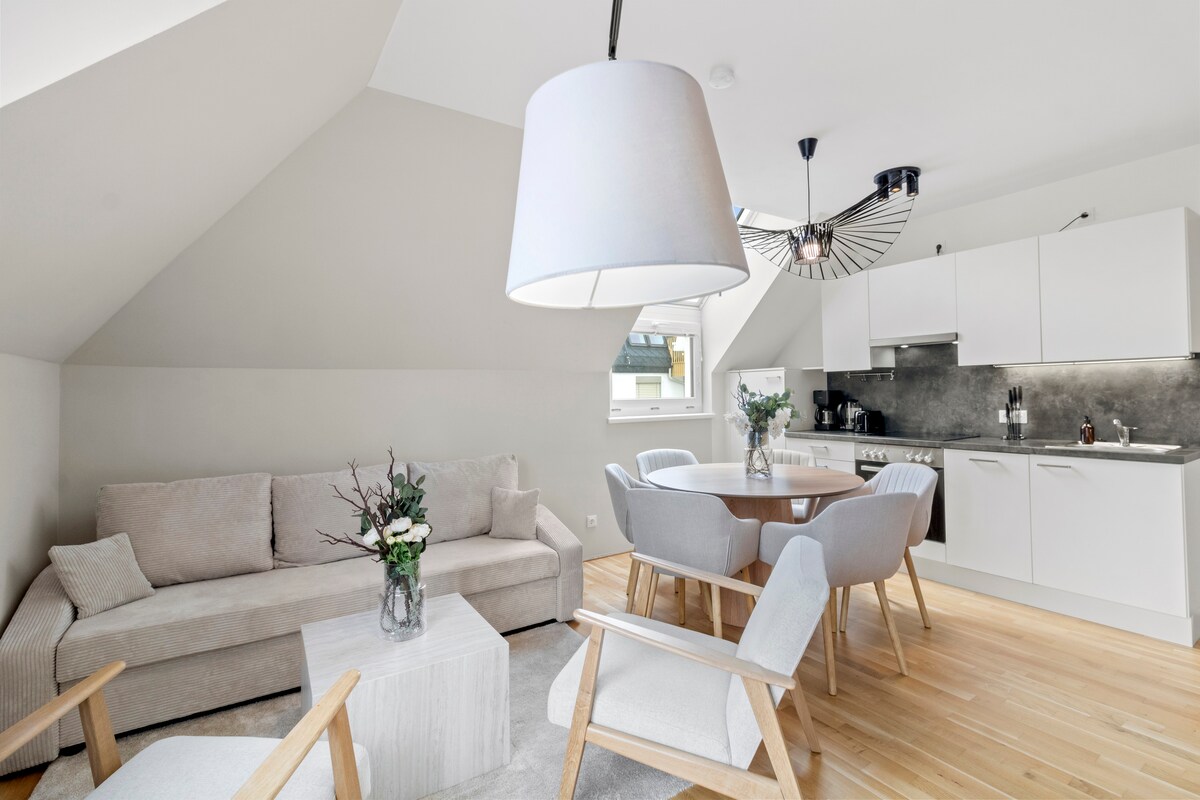 Tere tulemast oma stiilsesse disainkorterisse, mis asub esimeses majutuskohas Vana-Doonau lähedal! Valgusküllane pööning kvaliteetsete seadmetega: täispuidust mööbel, Sofiteli madrats (160 x 200 cm), vihmadušš, põrandaküte, kliimaseade ja päikeseline terrass. Täielikult varustatud köök täisautomaatse kohvimasinaga, eraldi magamistuba ja kiire WiFi-ga kabinet pakuvad ülimat mugavust. Ainult 5-minutilise jalutuskäigu kaugusel U1 Kagraner Platz – Stephansplatzist 15 minutiga. Kahe inimese jaoks ei ole lemmikloomi.